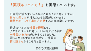 【講座感想】その人の在り方を否定することなく、その人の内側も受け止める事ができ、人を見る目も寛容になったと思います。