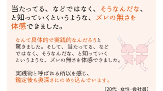 【鑑定感想】当たってる、などではなく、そうなんだな、と知っていくような、ズレの無さを体感できました。
