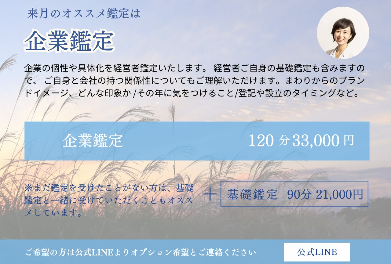 約半年間で、ご自身やお人の人生の設計図を読み取ることができます。